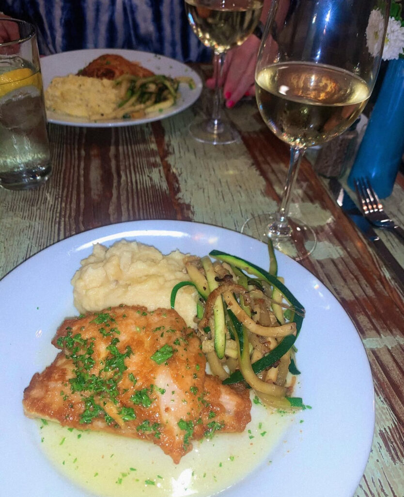 I got the pan seared mahi with veggies and mashed potatoes. My mom got pretty much the same thing but Salmon instead. I highly recommend getting the salmon, though my Mahi was tasty as well. It was the kind of fish that just melts in your mouth. For dessert we tried the peanut butter ice cream pie which was amazing. P.S. the staff was very attractive when I went there.