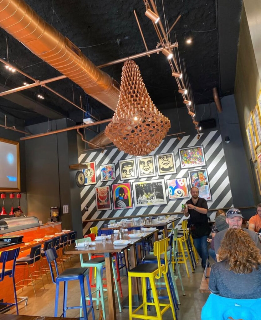 Spunky is the first word that comes to mind when you enter Mesu. They have a very Andy Warhol esk interior design, lots of pop art and color. The cool vibe of this spot makes it the perfect location to grab dinner and drinks with friends.